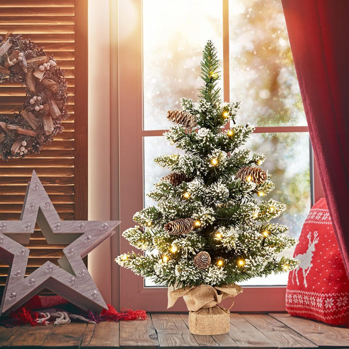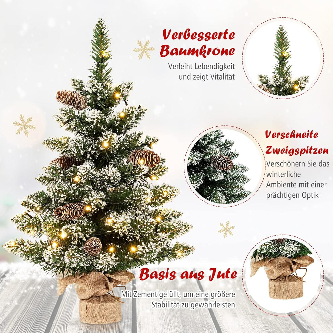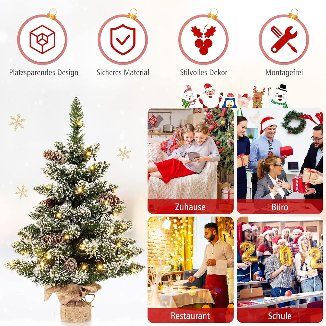 - 🎄【Ansprechende Festivaldekoration】Unser schneebeflockter Mini-Weihnachtsbaum hat ein exquisites Aussehen und schafft eine bezaubernde Winterlandschaft im Innenbereich, um in die festliche Atmosphäre einzutauchen. Egal wo Sie ihn hinstellen, er