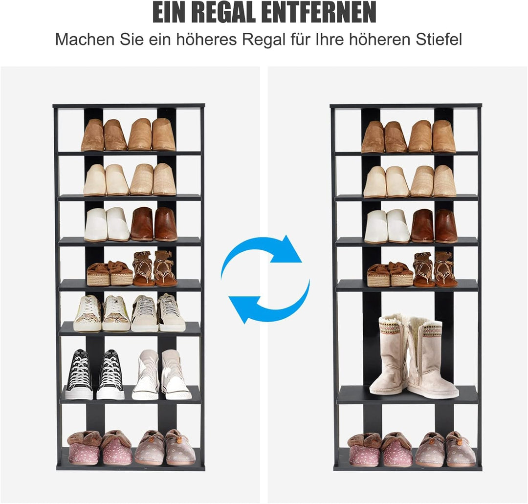 - 【8-stufiges Schuhregal】Das Schuhregal verfügt über 8 Etagen und bietet reichlich Stauraum, um Ihre Schuhe sauber und ordentlich aufzubewahren. Dadurch sind diese übersichtlich untergebracht und leicht zugänglich.