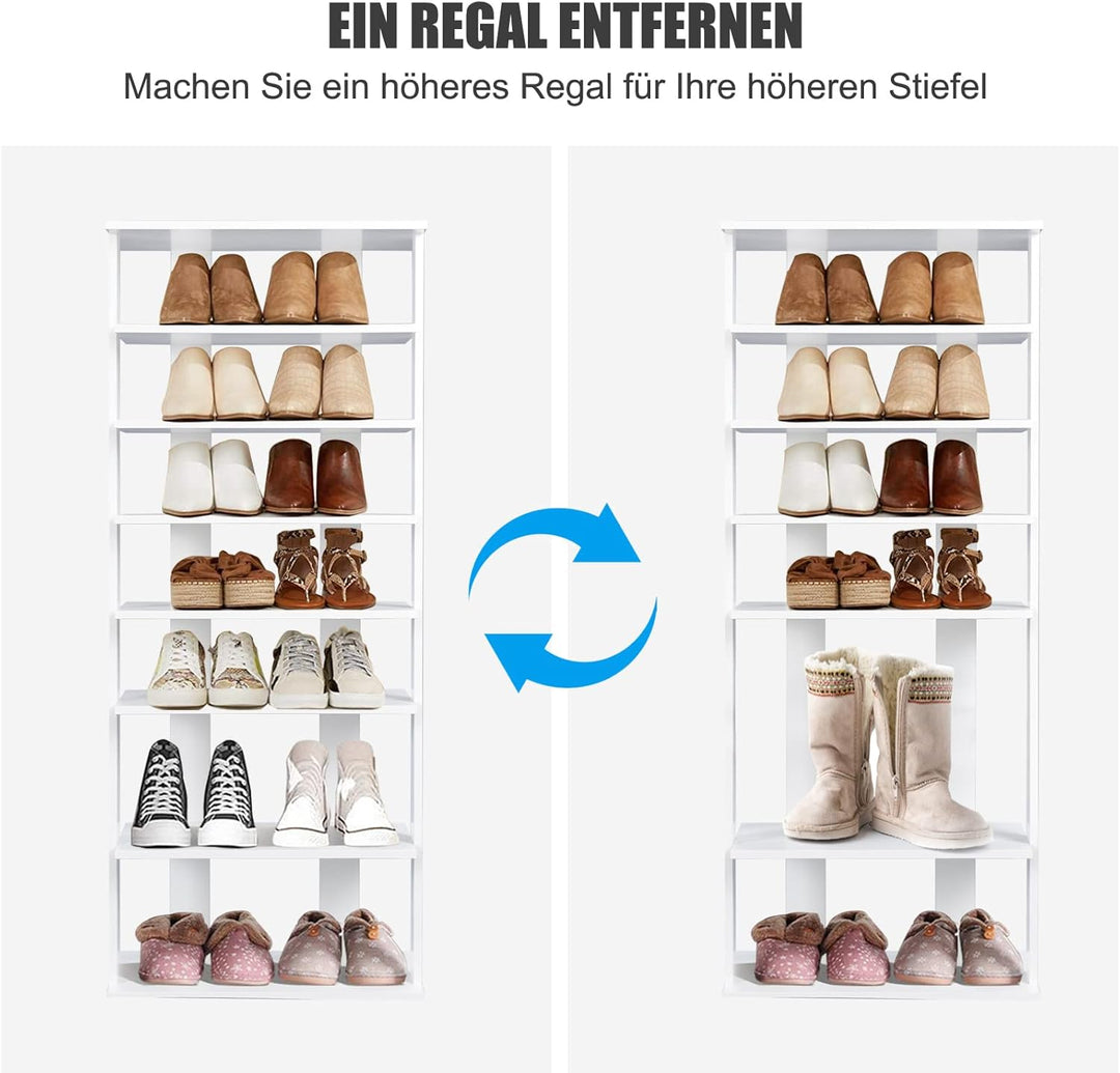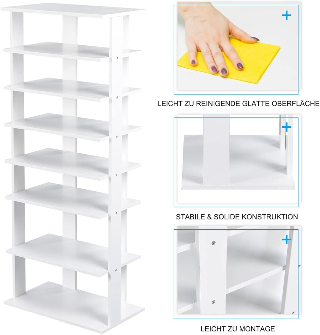 - 【8-stufiges Schuhregal】Das Schuhregal verfügt über 8 Etagen und bietet reichlich Stauraum, um Ihre Schuhe sauber und ordentlich aufzubewahren. Dadurch sind diese übersichtlich untergebracht und leicht zugänglich.