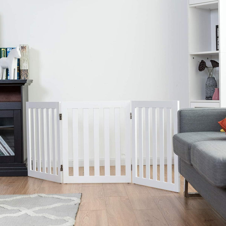 - 【Hübsches & elegantes Aussehen】Durch das schlichte und klassische Design sieht dieses freistehende Tiergatter sehr hübsch aus. Es bietet Tieren einen sicheren Bereich und ist eine tolle Ergänzung für Ihr Zuhause.