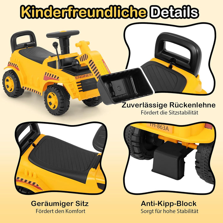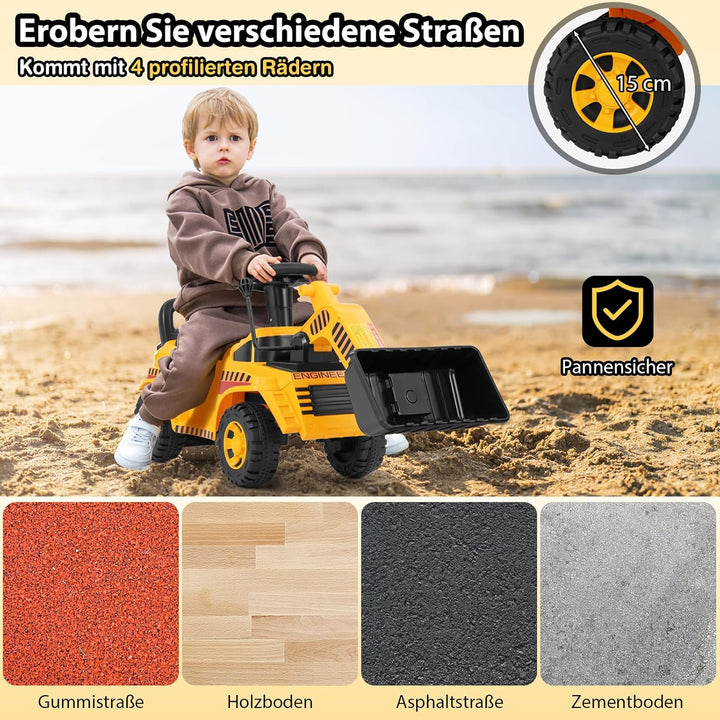 - 【Optimale Stabilität】Der Spielzeug-Bagger besteht aus hochwertigem PP und ist robust, während seine stützende Rückenlehne und die kippsichere Basis die Stabilität fördern. Dank pannensicherer Räder kann das Rutschfahrzeug verschiedene