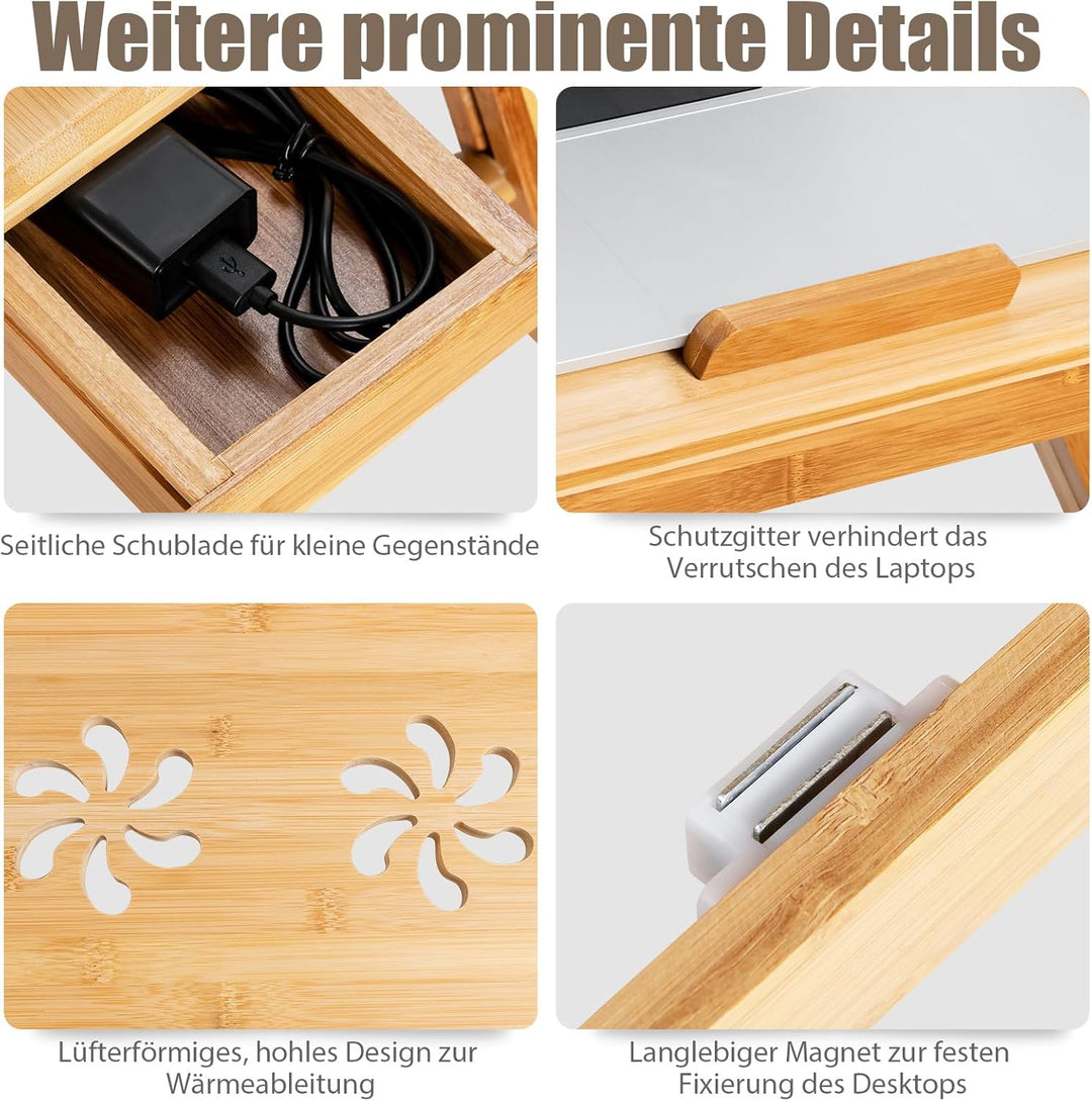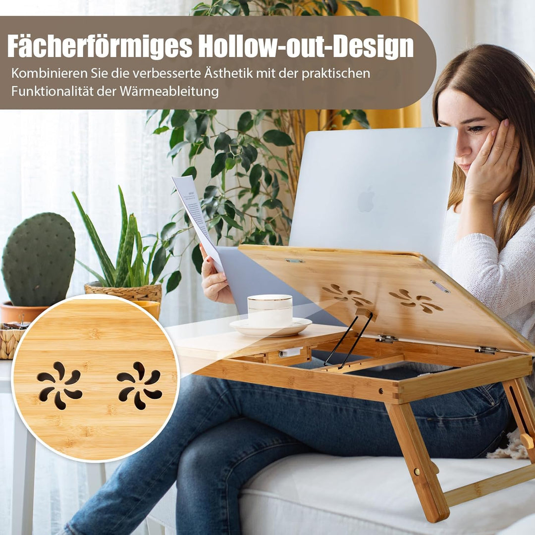 - 【Natürliches Bambusmaterial】 Hergestellt aus Bambusholz, ist dieser Laptoptisch ausgezeichnet in hoher Stabilität und erhöhter Haltbarkeit für eine längere Lebensdauer. Die glatte polierte und natürliche Oberfläche fühlt sich angenehm an und