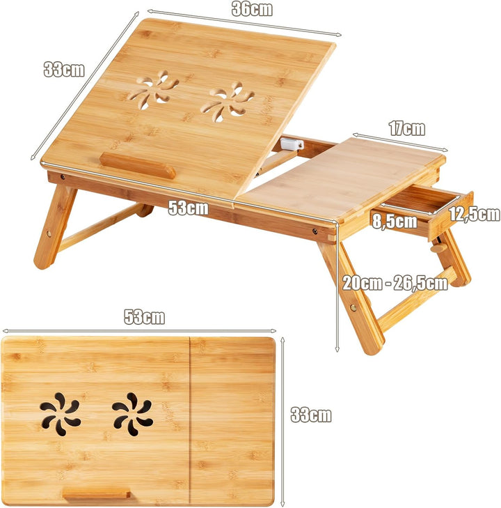 - 【Vielfältiger Stauraum mit Seitenschubladen】 Mit einer Grösse von 53 cm x 33 cm bietet die Tischplatte ausreichend Platz für Ihren Laptop, Teetasse, Mobiltelefon, Bücher und mehr. Die seitliche ausziehbare Schublade ist speziell für Ihren