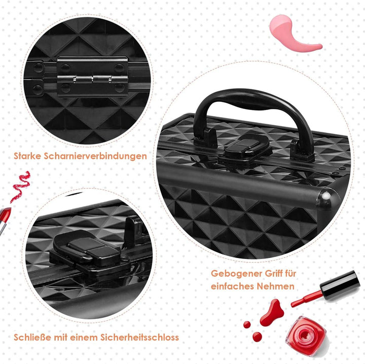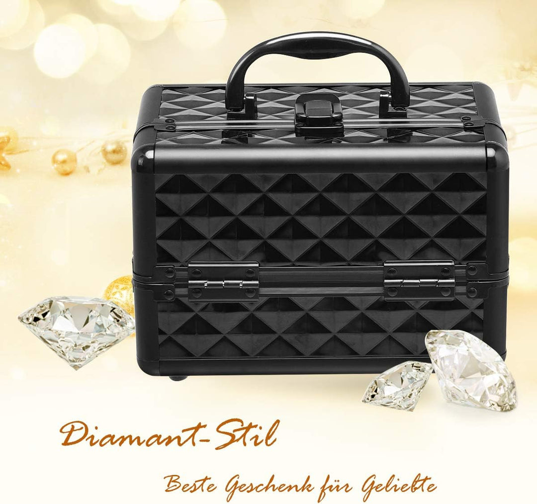 - 【Angemessene Struktur】Rahmen aus Aluminium mit 2 ausziehbare Tabletts, verschleissfest, robust, und haltbar, viel Platz für Kosmetik, Schmuck usw.