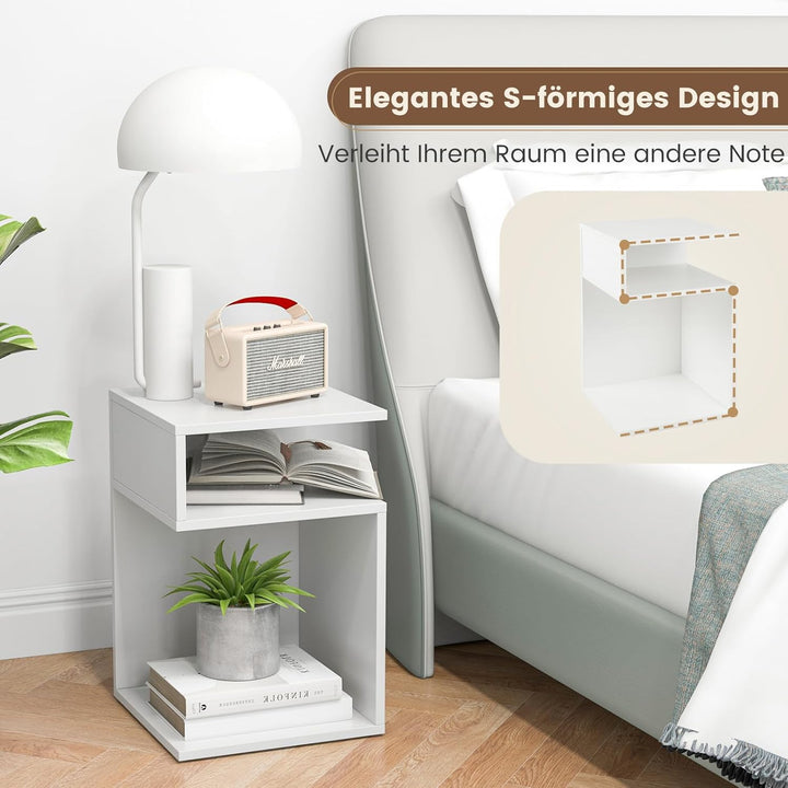 - 【S-Rahmen und breite Verwendung】Mit einem speziellen S-förmigen Design ist der Nachttisch stilvoller und hebt sich von den traditionellen Typen ab. Ausserdem bietet er mehr Möglichkeiten, sodass Sie ihn als Sofatisch oder Nachttisch verwenden