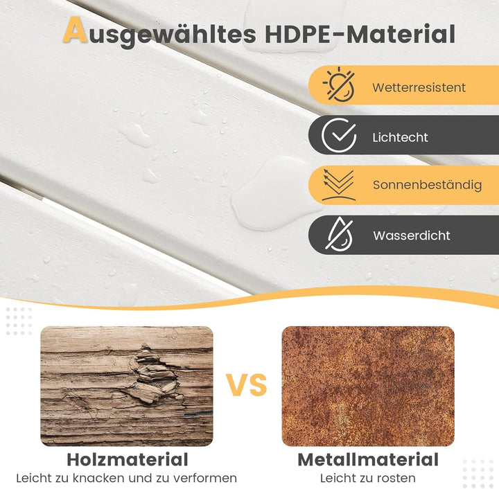 • 【Wir kümmern uns um unsere Zukunft】Wir glauben, dass der Schutz der Erde der Schutz der Zukunft ist. Daher machen wir diesen HDPE-Gartentisch recycelbar, da er aus recycelten Plastikflaschen hergestellt wird. Und der Bauprozess ist auch