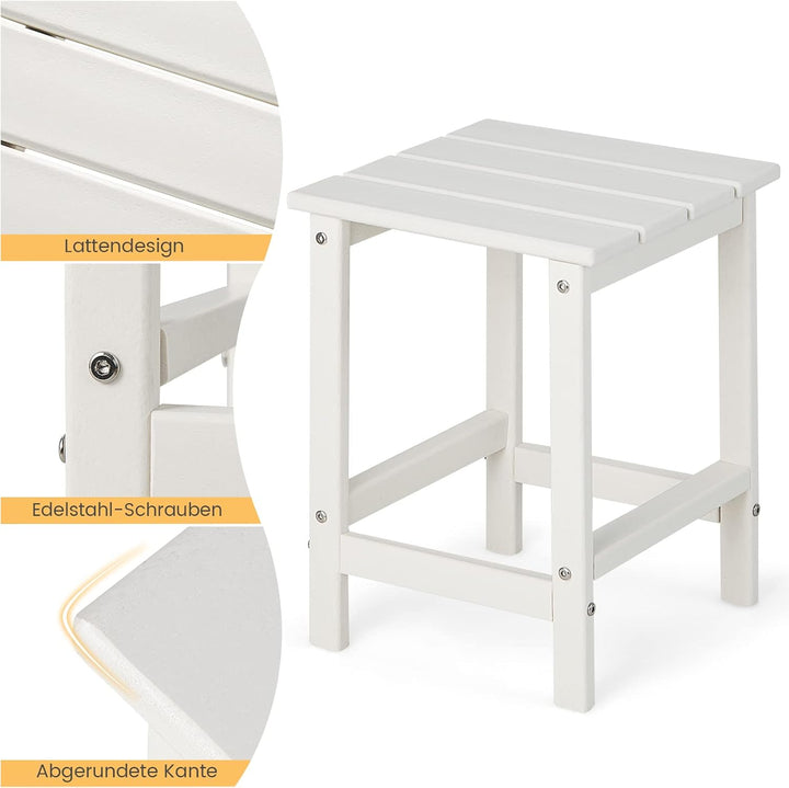 • 【Einfache Installation】Die Montage dieses Beistelltisches ist ganz einfach und spart Ihnen wertvolle Zeit. Dieser Beistelltisch misst 35,5 x 35,5 x 46,5 cm (L x B x H) und passt besser zu Ihren Adirondack-Stühlen im Freien und Sofas im Innenbereich