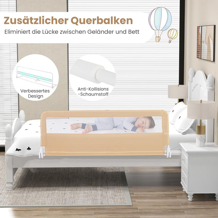 COSTWAY Bettgitter klappbar, 150 x 55 cm Bettschutzgitter mit Sicherheitsgurt & abnehmbarem Bezug, K
