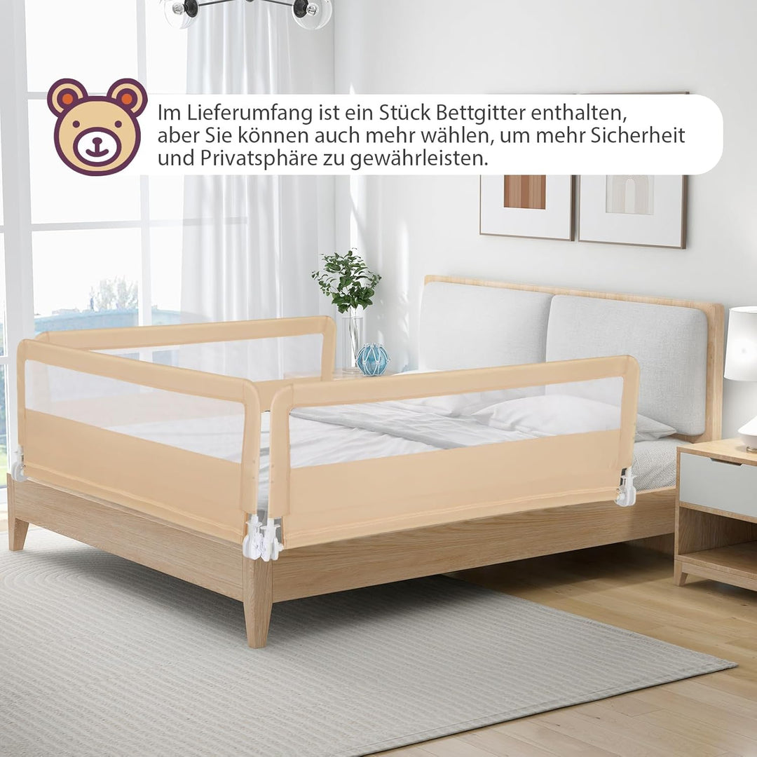 • 【Universelle Passform】Dieses vielseitige Kinderbettgitter ist für verschiedene Bettgrössen wie Einzel-, Doppel-, King- und Queen-Size-Betten ausgelegt. Es ist auch für verschiedene Bettarten geeignet, wie Metallrahmenbett, Lederbett, Holzbett,