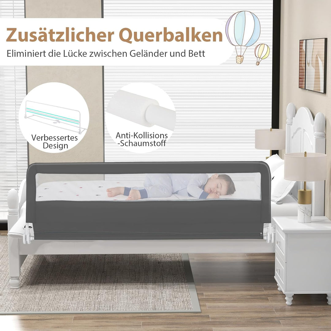 - đŁăSichere & angenehme SchlafenszeităMit einer LĂ€nge von 180 cm und einer Höhe von 56 cm bietet dieses Bettgitter Babys einen hervorragenden Schutz beim Schlafen und ermöglicht Eltern eine ruhige Schlafenszeit.