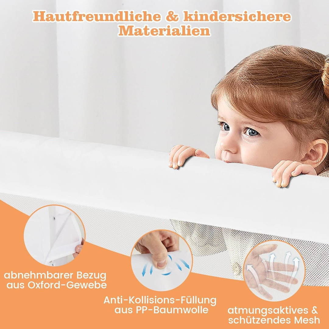 - 👼【Schützen Sie Ihr Baby】Mit einer Länge von 105/120/150 cm und einer Höhe von 42 cm garantiert dieses Bettgitter eine herausragende Sicherheit. Unsere hochwertigen Bettgitter schützen Kinder im Alter von 18 Monaten bis 5 Jahren vor