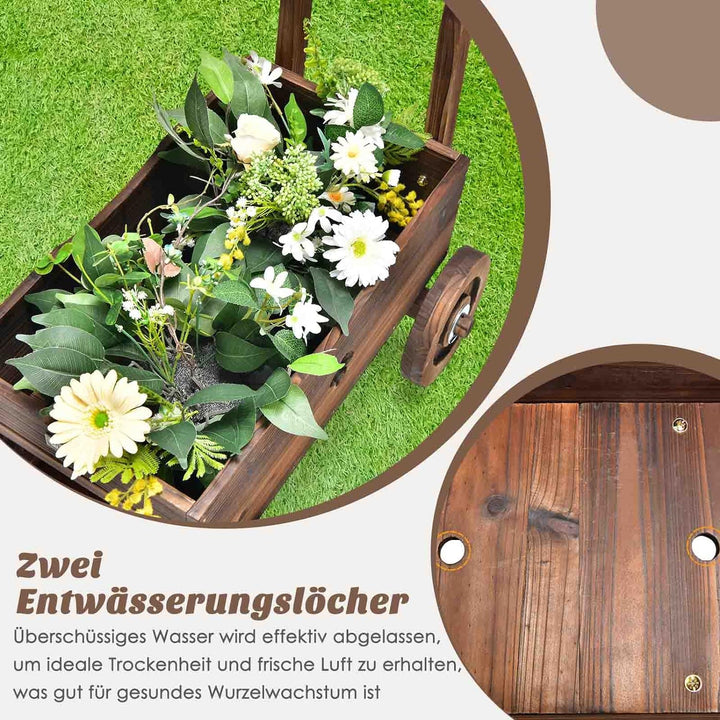 - 【Langlebiger und massiver Holzrahmen】 Der Blumenwagen ist aus ausgewähltem karbonisiertem Tannenholz gefertigt, das hochfest und witterungsbeständig ist und eine lange Lebensdauer gewährleistet. Und durch Hochtemperaturkarbonisierung wird das Holz