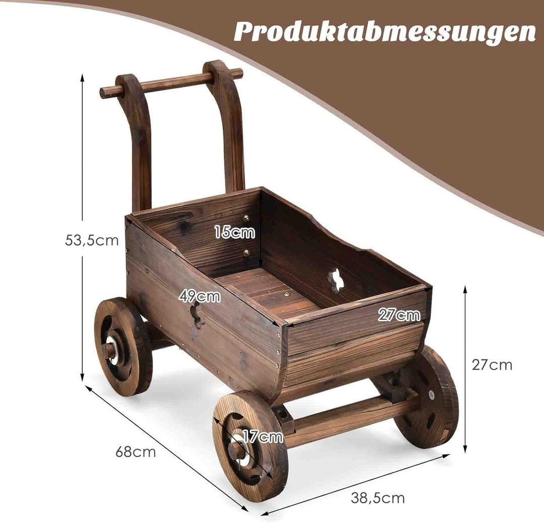 - 【Multifunktionales Design】 Der Holzwagen wird mit einem tiefen Pflanzkasten geliefert, der zum Kultivieren von Pflanzen oder zum Präsentieren von Blumentöpfen verwendet werden kann. Und mit seinem rustikalen Design und Vintage-Aussehen kann der