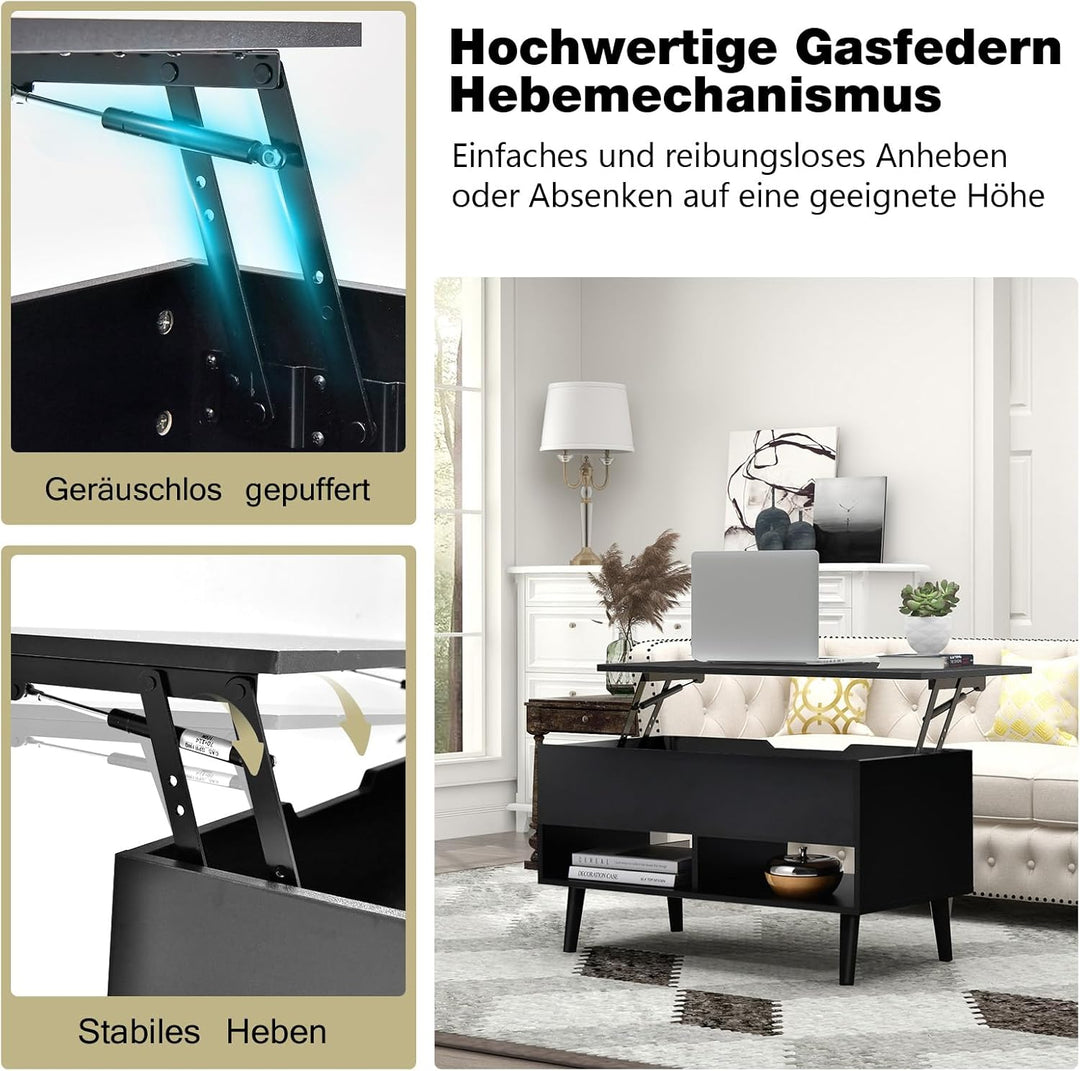 - 【Praktisches Design mit anhebbarer Tischplatte】Dank des hochwertigen Gasdruckmechanismus und der Aussparung lässt sich die Tischplatte mühelos von 44,5 cm auf 58 cm anheben und absenken, so dass ein individueller Arbeits- oder Essbereich entsteht,