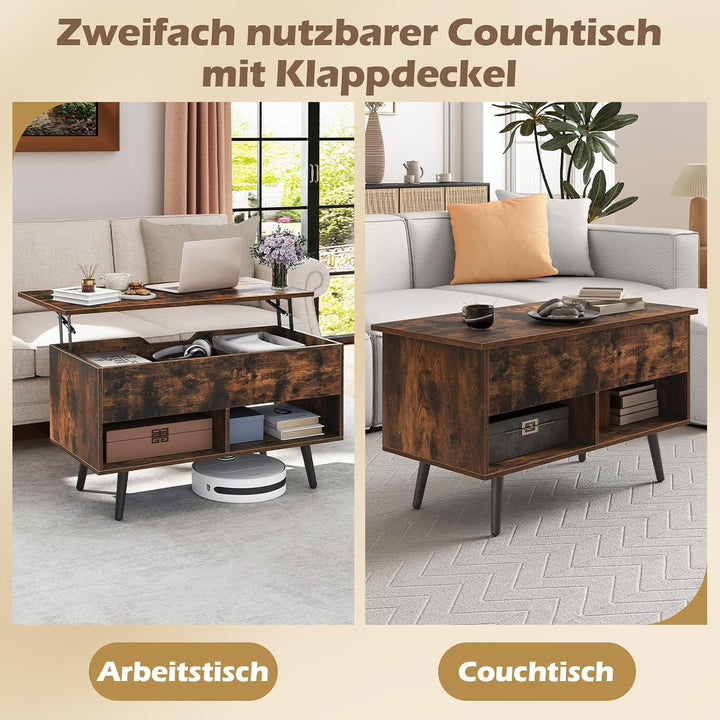 - 【Praktisches Design mit anhebbarer Tischplatte】Dank des hochwertigen Gasdruckmechanismus und der Aussparung lässt sich die Tischplatte mühelos von 46 cm auf 60 cm anheben und absenken, so dass ein individueller Arbeits- oder Essbereich entsteht,
