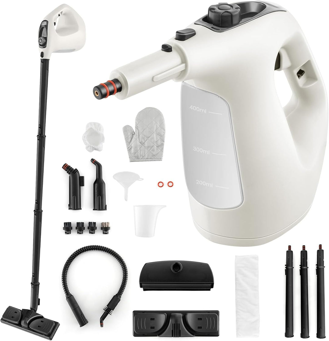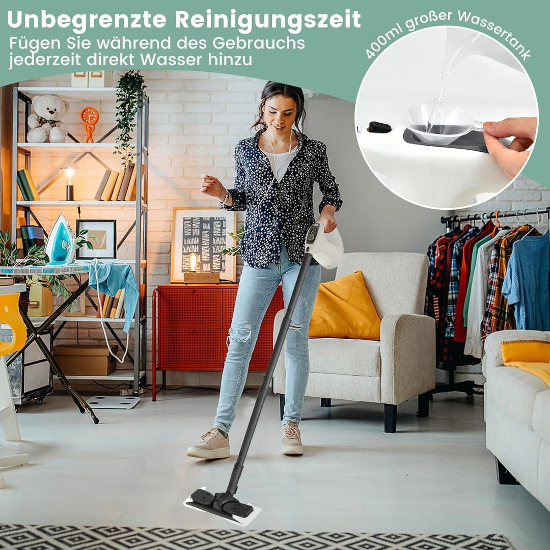 - 【Entwickelt, um Zeit und Mühe zu sparen】Ausgestattet mit einem 5 m langen Stromkabel, ist Entfernungen keine Hürde mehr, und Sie können jede Ecke des Raumes erreichen. Hinweis: Während der Nutzung stets angesteckt lassen. Dieser Dampfreiniger