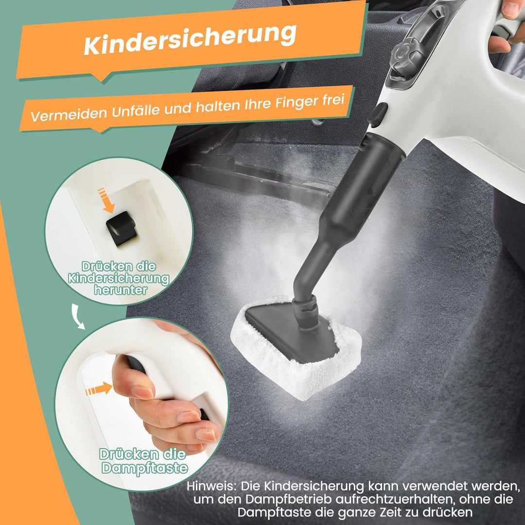 - 【Chemiefreie Reinigung & Sicherheitsfunktionen】Dieser Handdampfreiniger erzeugt 100% chemiefreien Dampf ohne schädliche Dämpfe oder Rückstände. Er ist ausserdem mit einer Kindersicherung ausgestattet, um Unfälle zu vermeiden und Ihre Hände zu
