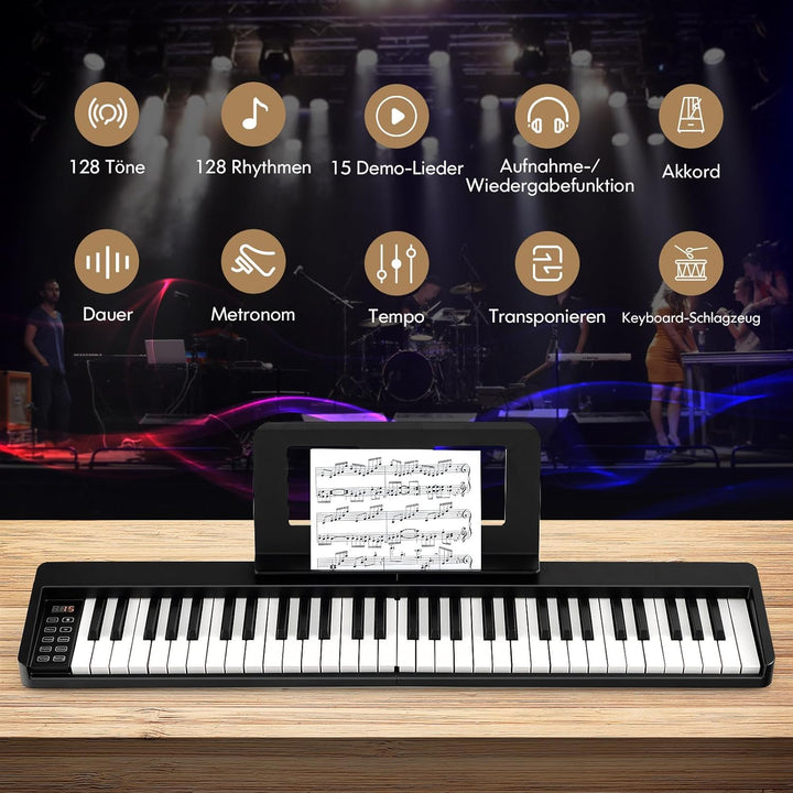 - 【Umfangreiche Funktionen & Zubehör】Dieses tragbare Digitalpiano verfügt über 128 Töne, 128 Rhythmen und 15 Demo-Songs. Ebenso gibt es weitere Funktionen wie Keyboard-Drum, Akkord, Sustain, Metronom, Tempo, Transposition,