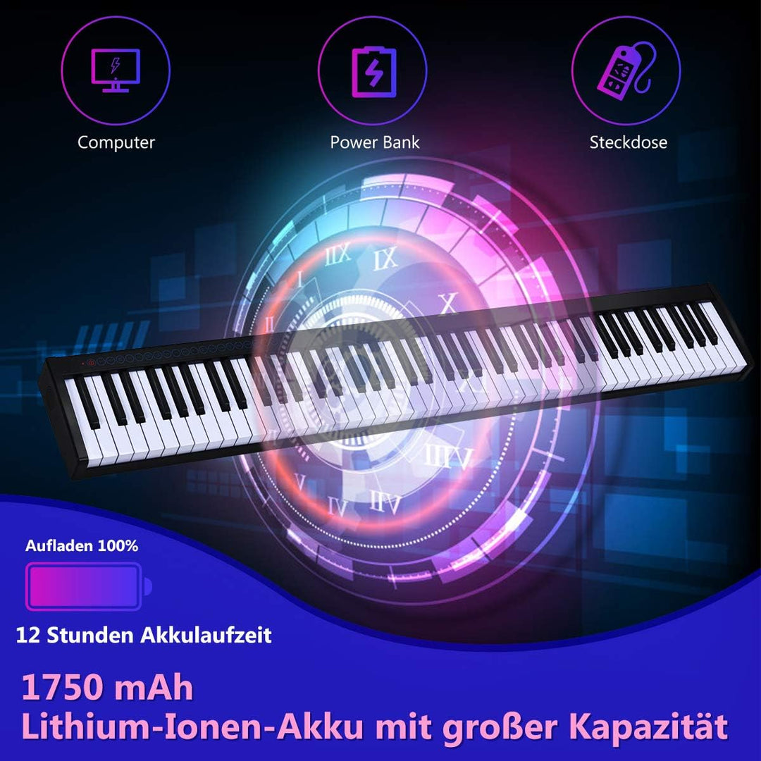 • 【Grosse und gewichtete Tasten für sanftes und sicheres Spielen】 Die grossen und schweren Tasten, 1:1 dem Klaviertastenverhältnis entsprechend, bieten ein komfortables Drücken und für sorgen für eine gleichmässige Tiefe. Die