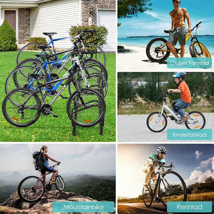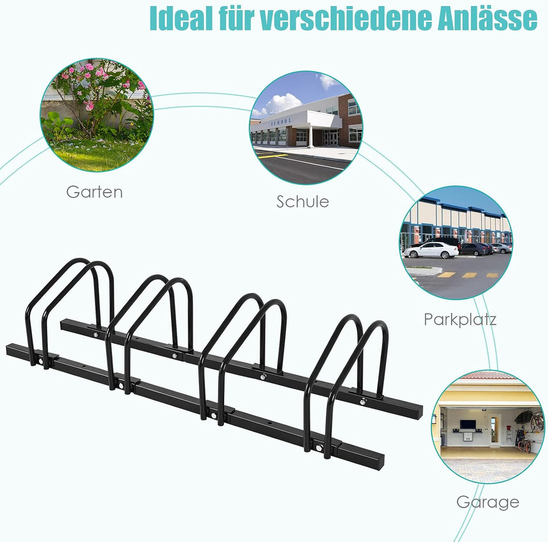 - 【Grosser Einsatzbereich 】In jedem Ständer ist Platz für mehrere Fahrräder verschiedenster Typen, wie beispielsweise Kinderräder, Mountainbikes, etc. Durch seinen minimalistischen Stil fällt er in der Umgebung nicht auf und eignet sich für Gärten, Garagen usw.