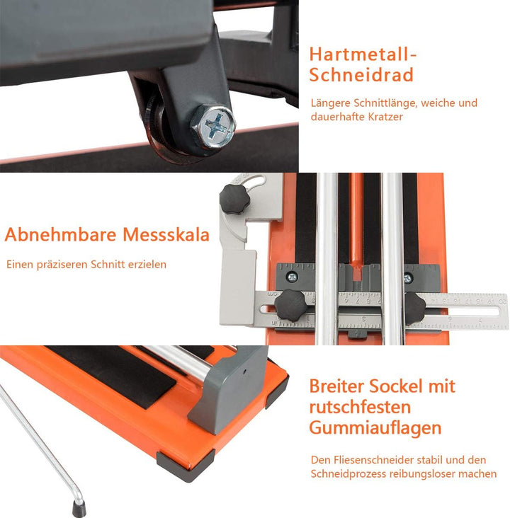 - ✂️【Keine Montage benötigt】Dieser Fliesenschneider bedarf keinerlei Montage, lediglich dasMassband muss manuell befestigt werden. Dabei ist der Gebrauch dank der ausführlichen Gebrauchsanleitung sehr einfach und unkompliziert und daher auch für