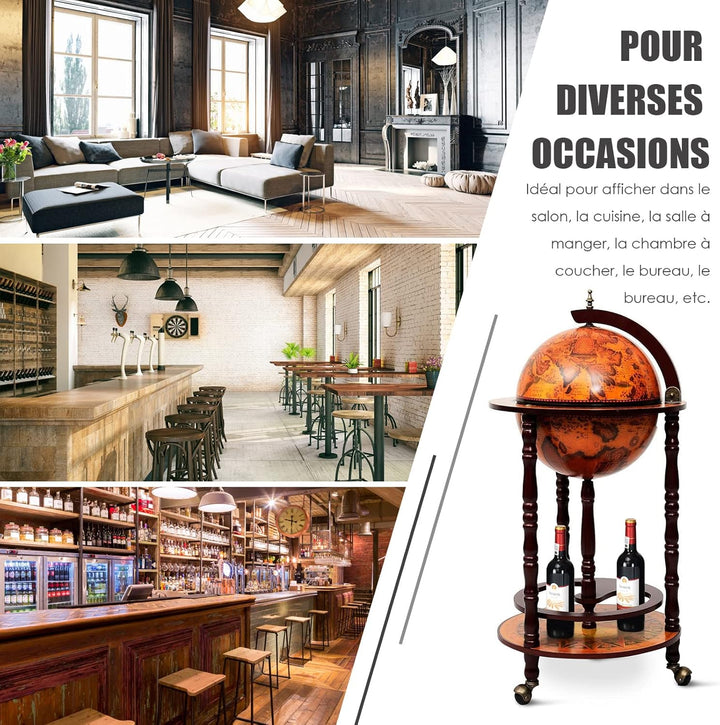 - 【Einfache Bewegung】Mit 3 Rollen ist die Globusbar bequem und einfach zu bewegen und zu transportieren.