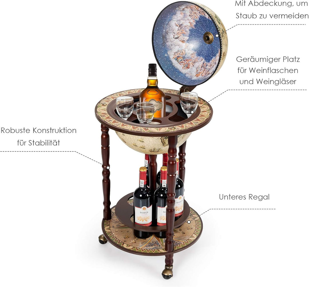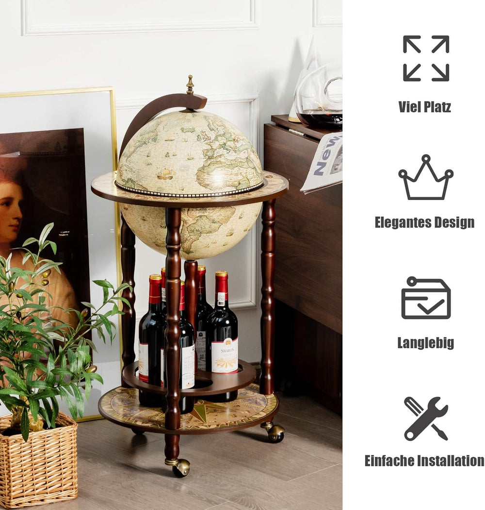 - 【Einfache Bewegung】Mit 3 Rollen ist die Globusbar bequem und einfach zu bewegen und zu transportieren.