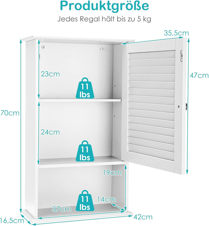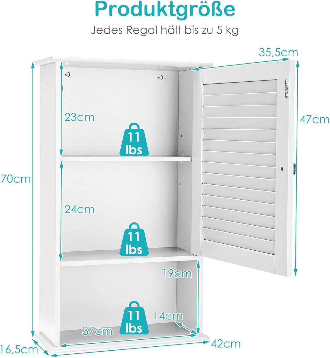 - 【Vielseitig einsetzbar】 Dieser Wandschrank kann problemlos an der Wand im Bad, Küche und Flur befestigt werden und sorgt so für eine komfortable und geordnete Wohnumgebung. Sein schlichter und eleganter Stil lässt sich hierbei problemlos mit