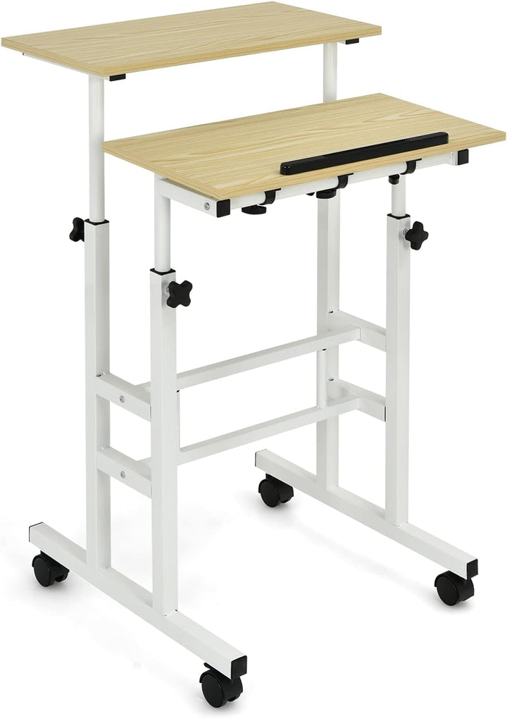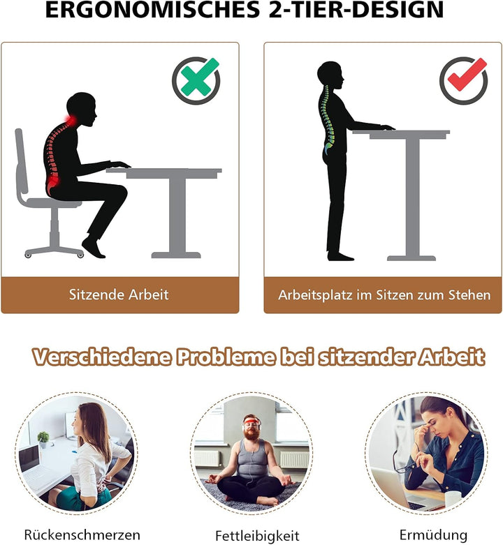 - 【Ergonomisches Design】Dank des ergonomischen und höhenverstellbaren Designs können Sie je nach Wahl beim Arbeiten sitzen oder stehen. Die obere Ablage kann von 72 - 124cm verstellt werden, und die untere von 72 cm bis 112 cm.