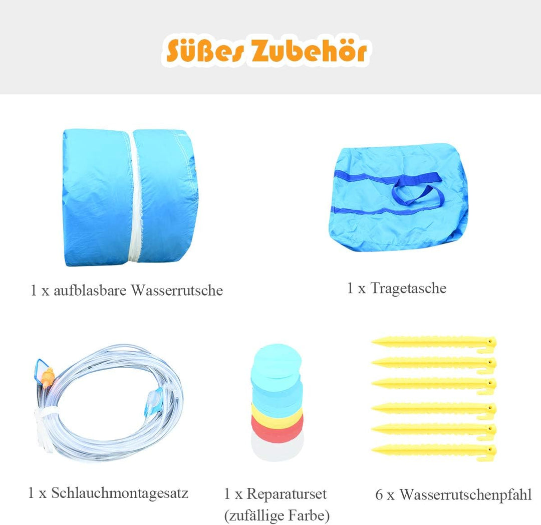 - 【Praktisches Zubehör】Um Ihrepositiven Erfahrungen mit diesem Wasserpark weiter zu steigern, schicken wir Ihnen einige Zubehörteile, wie einen Wasserschlauch für mehr Spass, eine Tragetasche zum leichten Verstauen und Transportieren, 6 Heringe für
