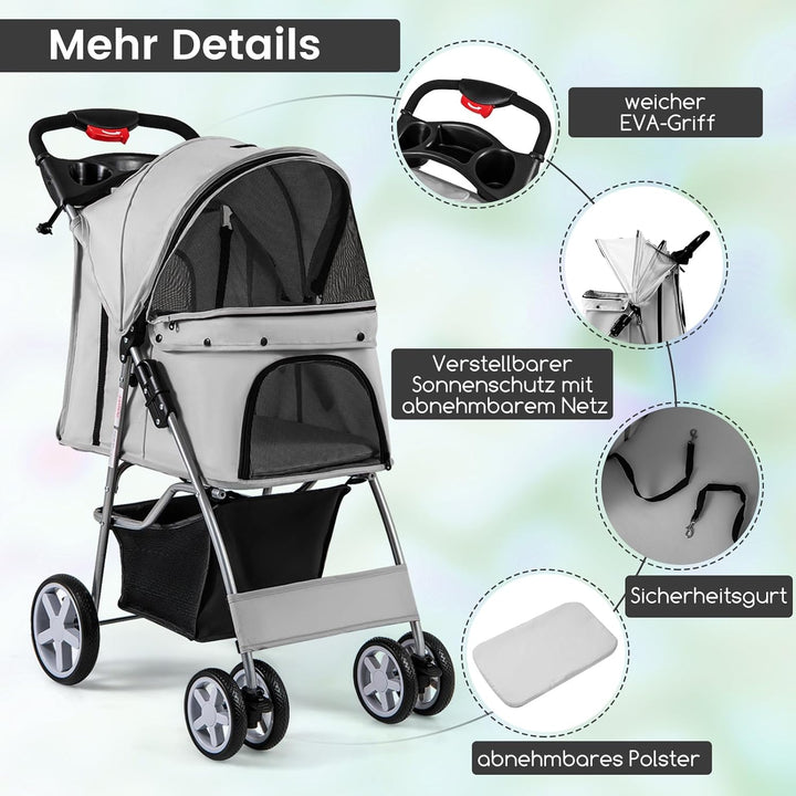 - 【Sorglos mit dem Haustier reisen】Dieser Wagen ist ideal für kleine und alte Haustiere, die nicht so lange laufen können. So können Sie es mit nach draussen nehmen und die frische Luft geniessen.
