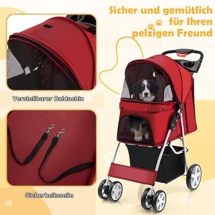 COSTWAY Hundewagen Haustiere Buggy bis 15kg, Hundebuggy mit Netzfenstern & Getränkehalter & Anhänger