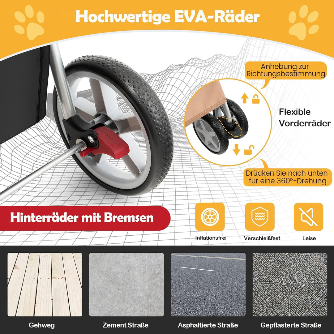 - 【Klappbares Design mit Rädern】Dieser Wagen lässt sich mit einer Hand schnell zusammenklappen und nimmt danach im Auto oder zuhause nur wenig Platz ein. Die 4 stossdämpfenden universellen EVA-Rädern mit Bremsen ermöglichen eine einfache Bewegung.