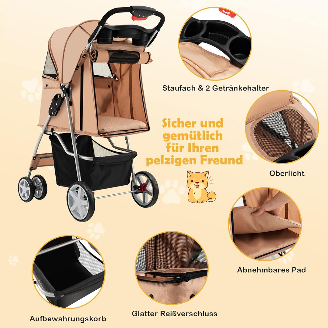 - 【Stabiler Rahmen & Auskleidung】Durch den hochwertigen Metallrahmen und das langlebige MDF ist dieser Haustierwagen langlebig und formstabil. Innen ist er bequem gepolstert.