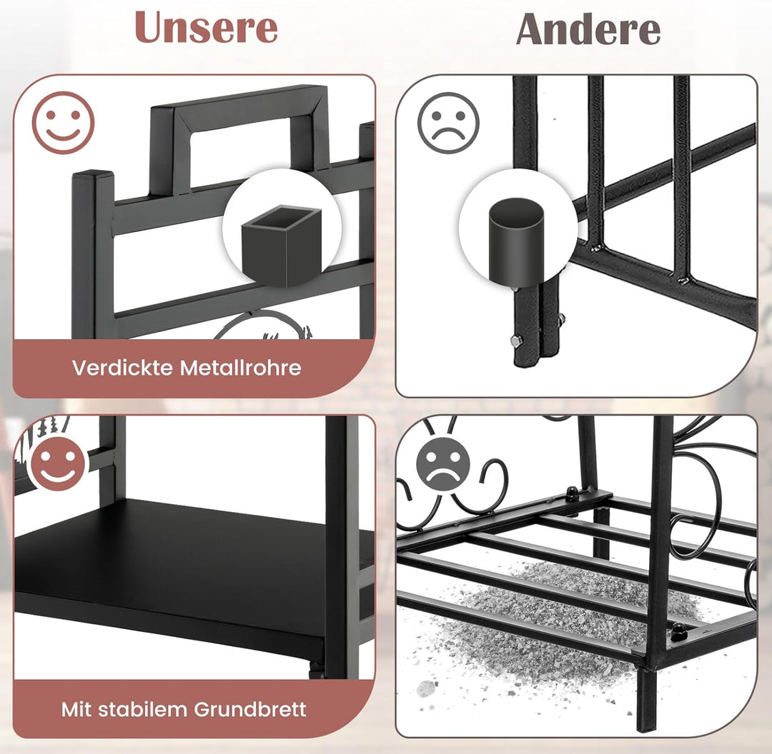 - 【Praktische Griffe】Ausgestattet mit zwei quadratischen Griffen lässt sich dieser Kaminholzregal leicht bewegen, wenn darauf Brennholz gestapelt ist. Diese Griffe erleichtern nicht nur den Transport, sondern dienen auch zum Aufhängen der