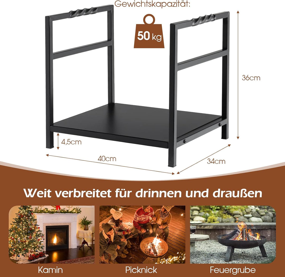 - 【Ausreichend Stauraum】 Mit einer Grösse von ca. 40 x 34 x 36 cm bietet dieses Kaminholzregal ausreichend Stauraum für den täglichen Gebrauch. Darüber hinaus können Sie das Brennholz für einen einfachen Zugriff ordentlich und griffbereit stapeln, was auch dazu beiträgt, dass Ihr Zuhause aufgeräumter und sauberer aussieht.