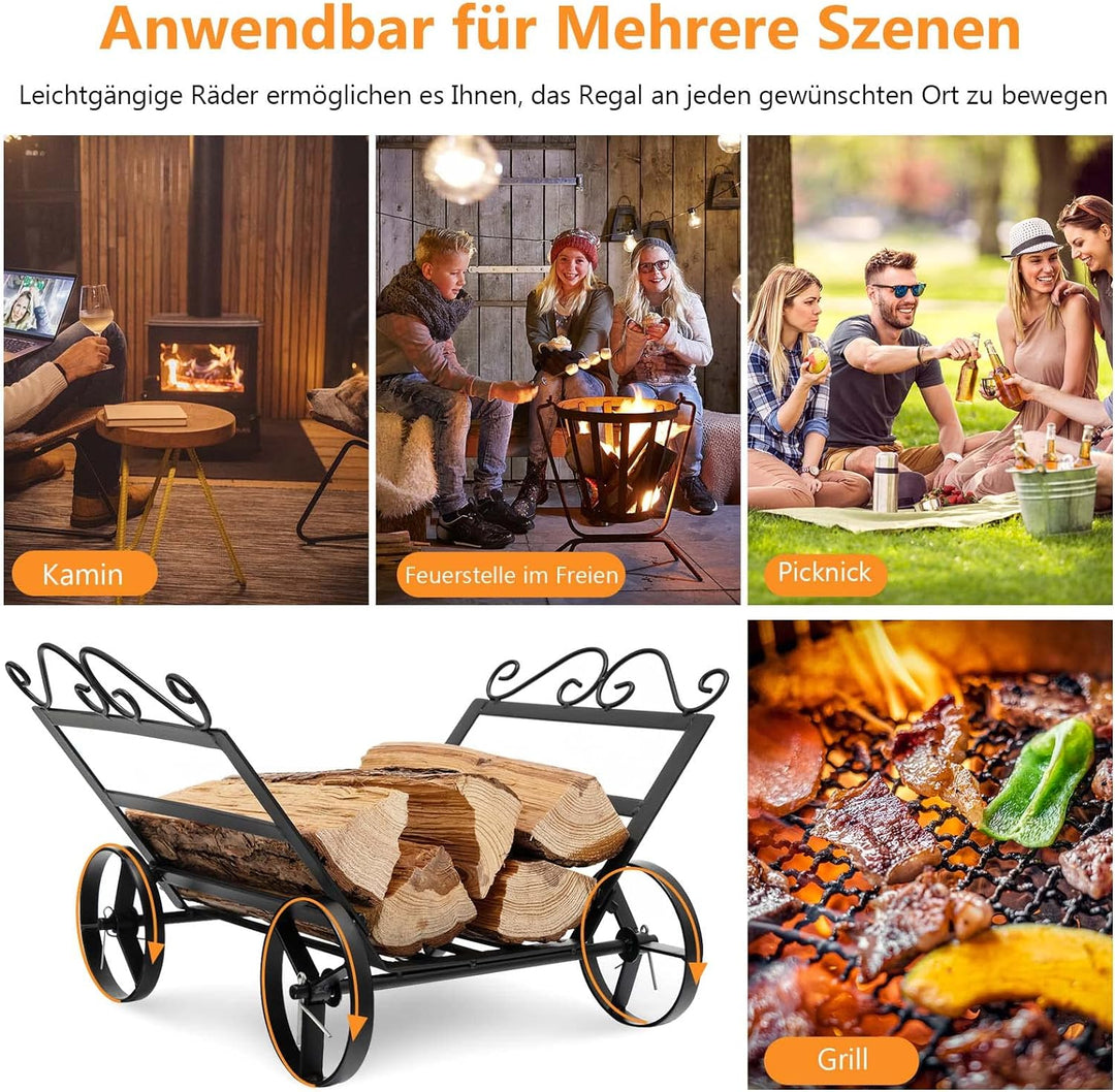 - 【Funktionale Räder】Dieses Kaminholzgestell besitzt 4 praktische Räder an der Unterseite. Daher können Sie das Regal mühelos bewegen, ohne es anzuheben. Darüber hinaus hebt das Design der Räder gleichzeitig die Bodenplatte an, was die Luftzirkulation fördert und das Brennholz immer trocken hält.