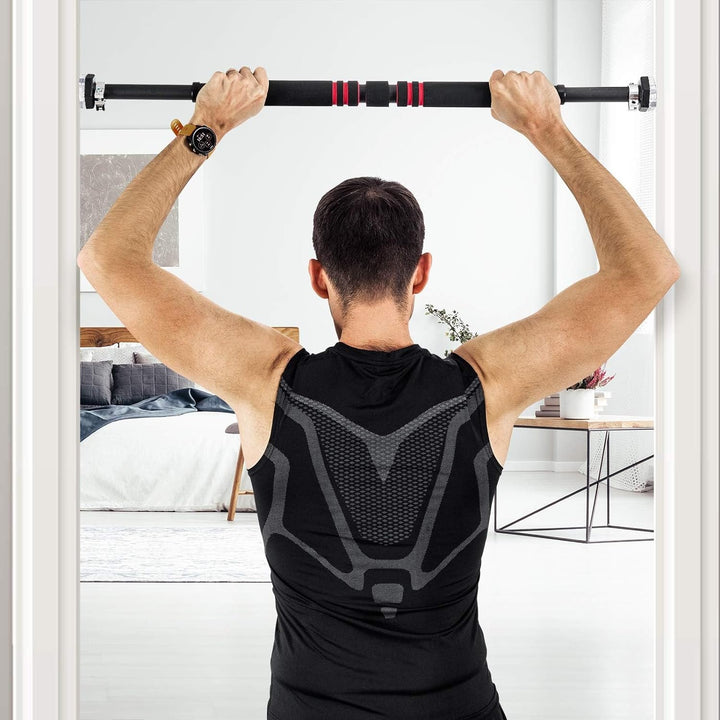 - 【Einstellbare Länge】 Um zu verschiedenen Türen zu passen, lässt sich die Stange von 65 cm bis 100 cm verstellen. Sie kann einfach eingehängt werden und eignet sich daher für zuhause, Büros, Fitnessstudios usw. Zudem lässt sie sich bei Bedarf