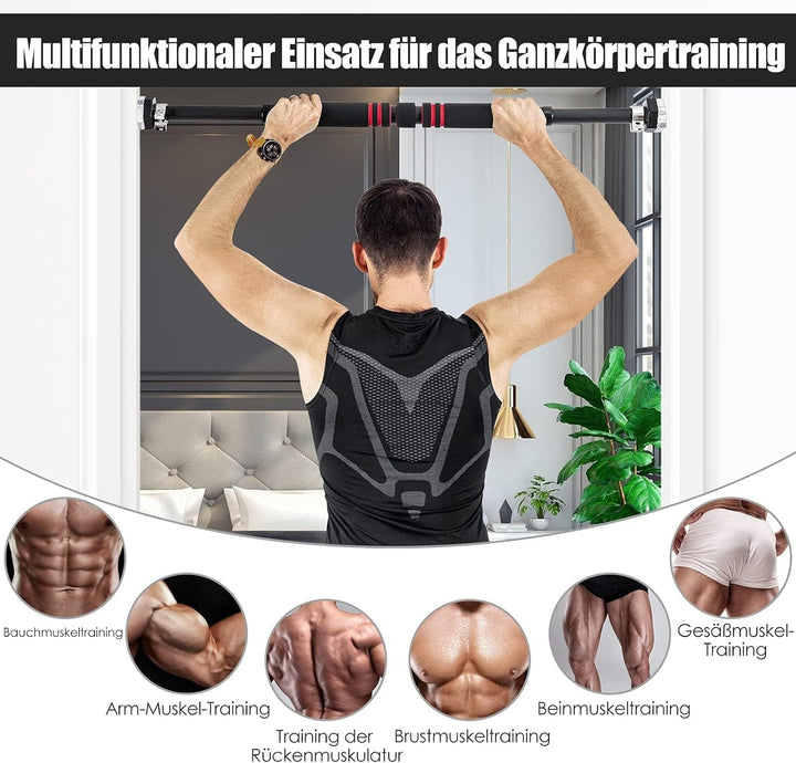 - 【Vielseitige Nutzung】 Die Stange kann für verschiedenste Übungen genutzt werden, beispielsweise für Klimmzüge. So werden die Muskeln des ganzen Körpers gestärkt, sei es nun der Rücken oder die Arme.