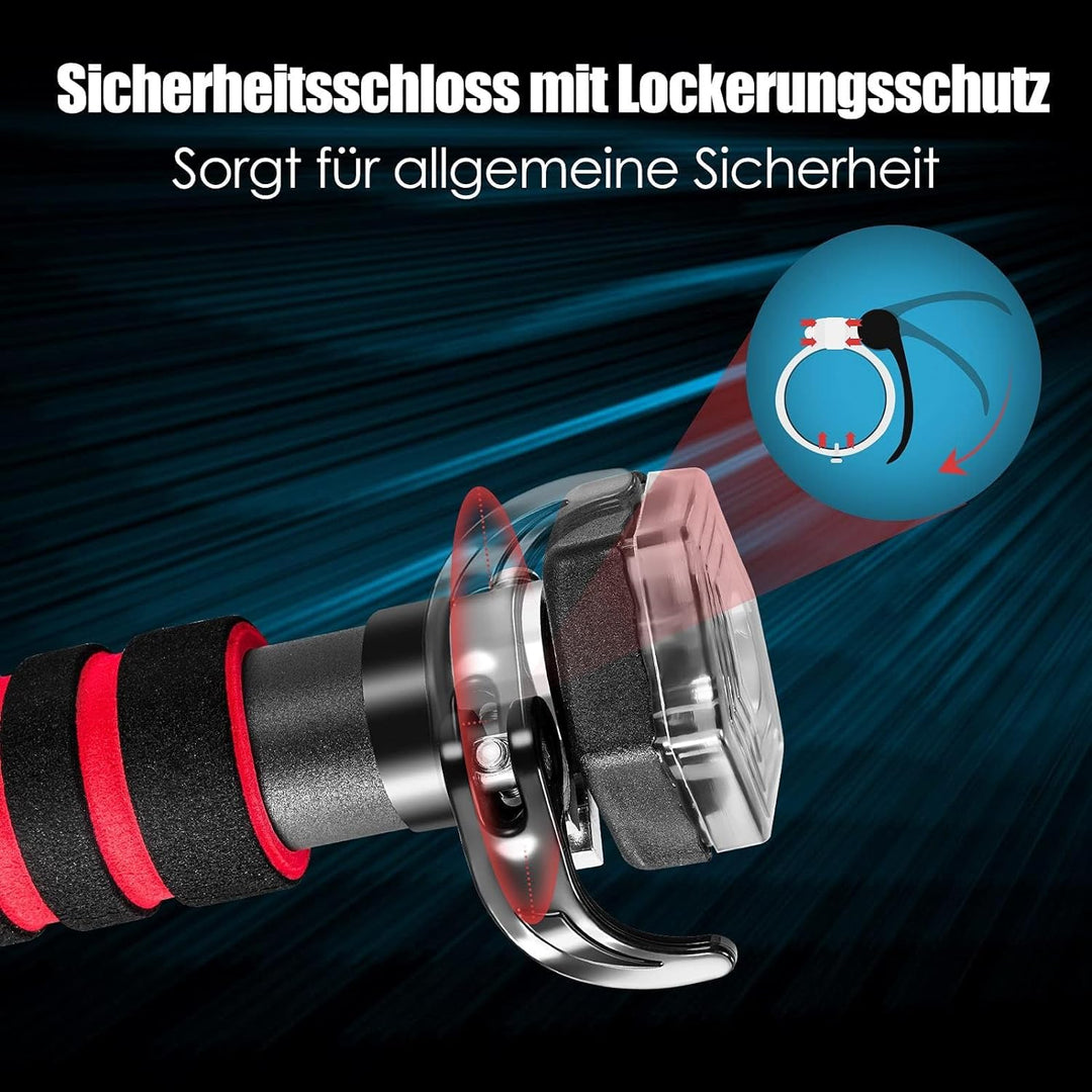 - 【Schaumstoffgriff & Gummiring】 Die Schaumstoffgriffe sind weich und rutschfest, was für die Sicherheit und Stabilität sorgt. Durch die Gummiringe wird der Türrahmen zudem vor Kratzern geschützt.