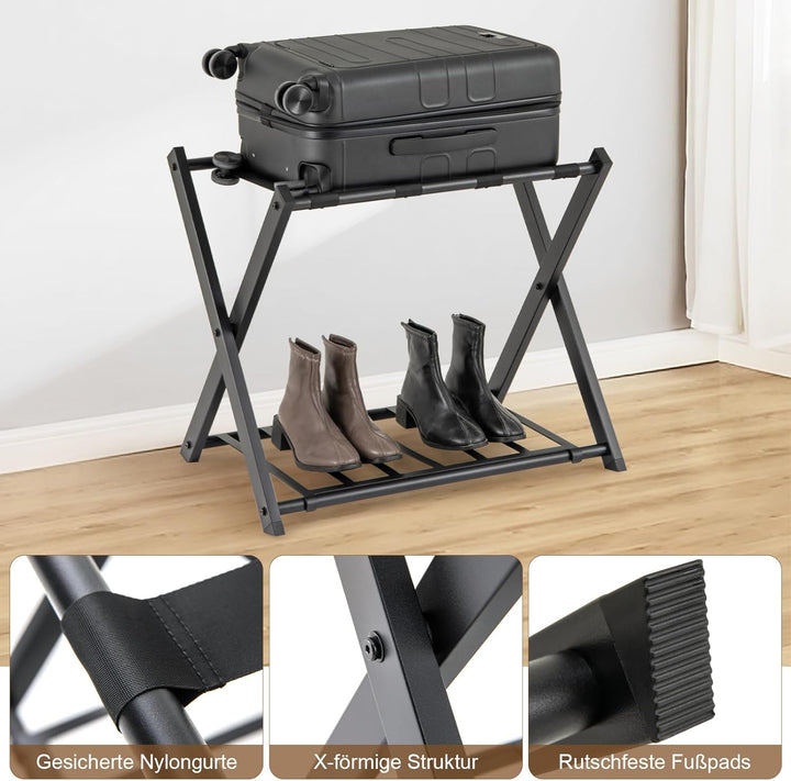 - 【Platzsparende Aufbewahrung】Wenn der Gepäckständer nicht verwendet wird, lässt er sich kompakt zusammenklappen und nimmt nur minimalen Platz in Ihrem Zuhause ein. Er ist die perfekte Aufbewahrungslösung für alle, die nur wenig Platz haben, aber