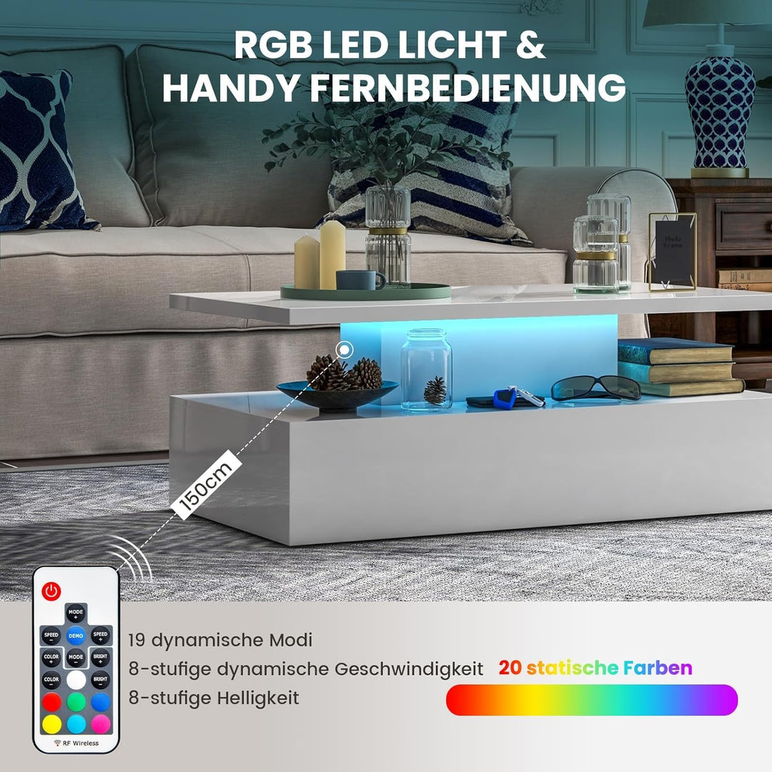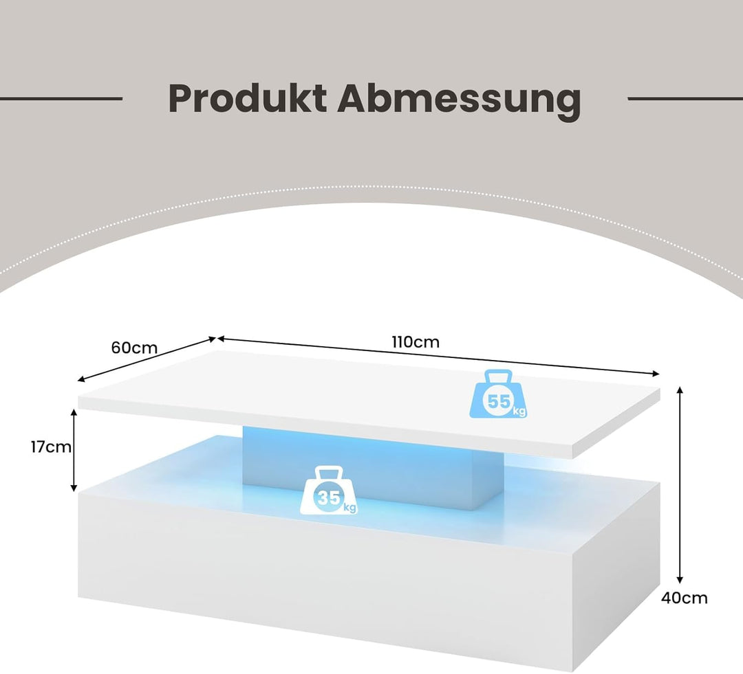 - 【Klassisches geradliniges Design】Dieser moderne LED-Couchtisch schafft eine bezaubernde Dekoration. Sein elegantes Design in reinem Weiss passt perfekt zu anderen Möbeln und verleiht Ihrer Wohnumgebung ästhetische Schönheit, sei es im Wohnzimmer,