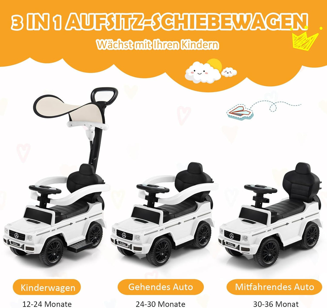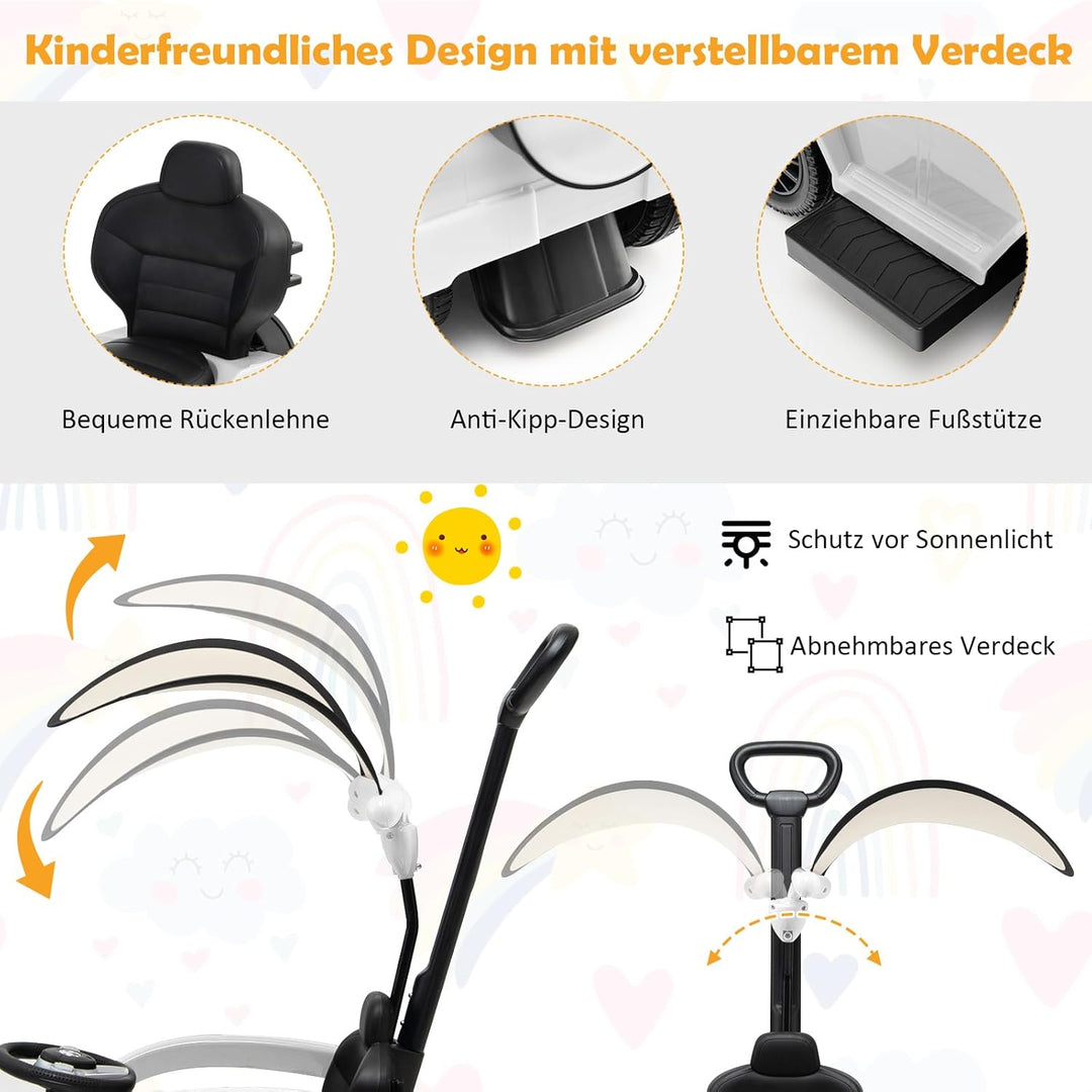 - 【3-in-1 Rutschauto】Unser Rutschauto hat ein wandelbares Aussehen mit abnehmbaren Teilen wie dem Elterngriff, der Armlehne und dem Sonnendach. Sie können das Rutscher-Auto zwischen einem Kinderwagen mit Sonnendach, einem Fahrzeug zum Mitfahren und
