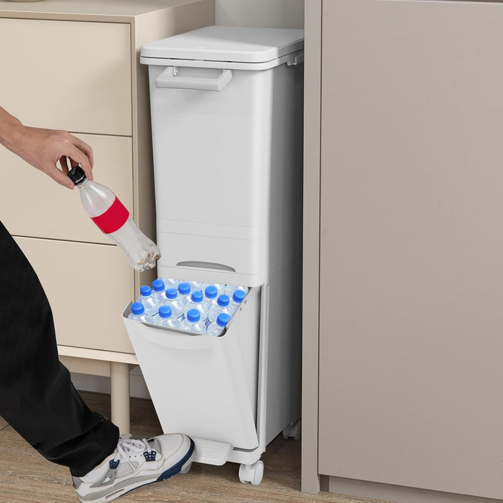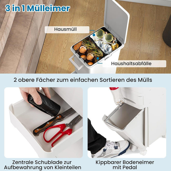 - 【3-in-1 Mülleimer】Dieser multifunktionale Abfalleimer verfügt über 2 obere Fächer zur einfachen Mülltrennung, während der neigbare untere Behälter mit einem Fusspedal zusätzlichen Platz für mehr Abfall bietet. Ausserdem gibt es eine mittlere