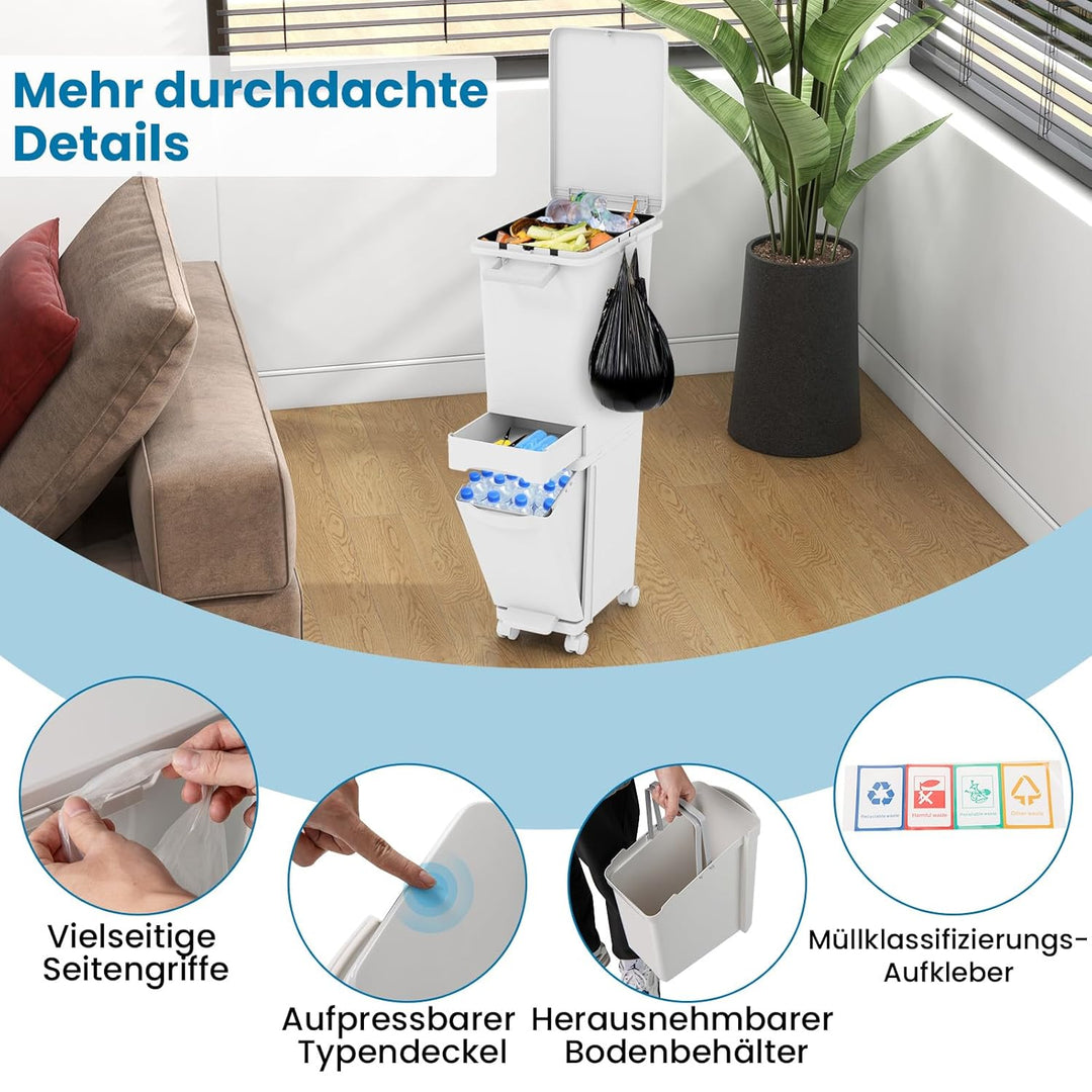 - 【Einfache Bewegung & Breite Anwendung】Ausgestattet mit 4 Universalrädern (2 davon mit Bremsen) für eine reibungslose Fortbewegung, ermöglicht dieser Mülleimer einen einfachen Transport von Raum zu Raum. Er kann in der Küche, im Wohnzimmer oder