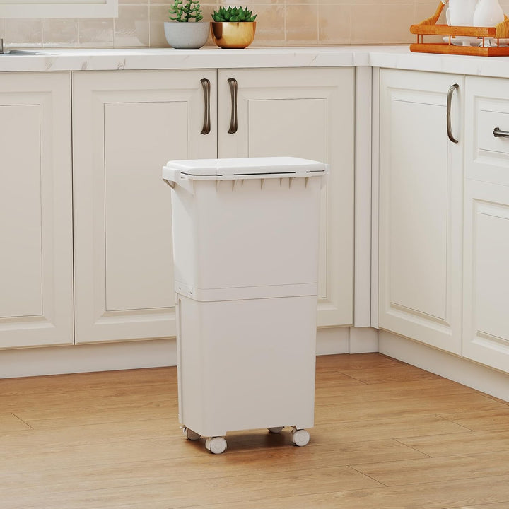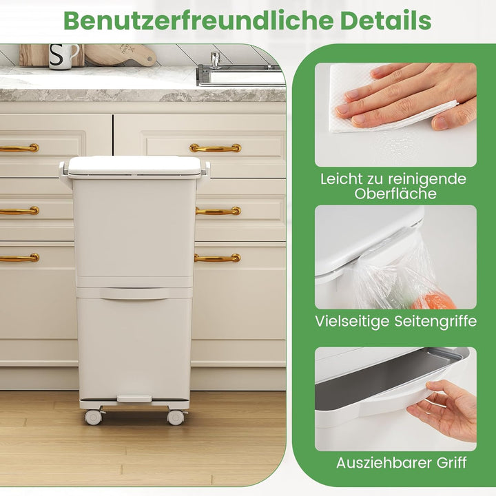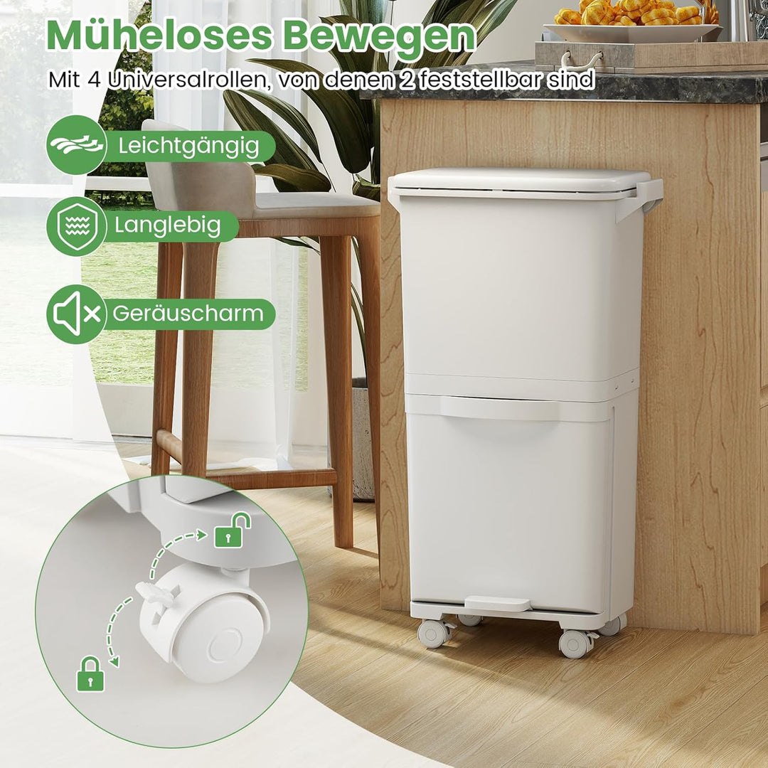 - 【Erhöhte Höhe & einfache Bewegung】Dank des erhöhten Designs entfällt das Bücken, wodurch die Müllentsorgung erleichtert wird. Zudem sorgen 4 Universalrollen, davon 2 mit Bremsen, für eine einfache Bewegung.