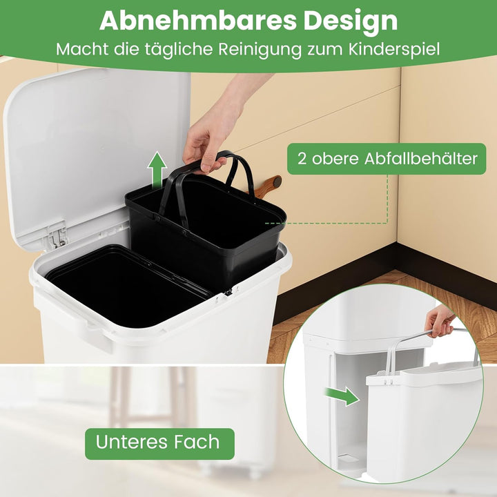 - 【Mehr durchdachte Details】Dieser Pedal-Mülleimer ist mit einem Klappdeckel und Müllklassifizierungsaufklebern für zusätzlichen Komfort ausgestattet. Ausserdem erleichtert der herausnehmbare Behälter die Reinigung und spart Energie.