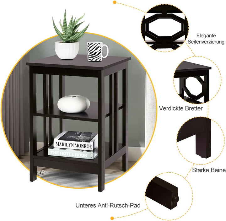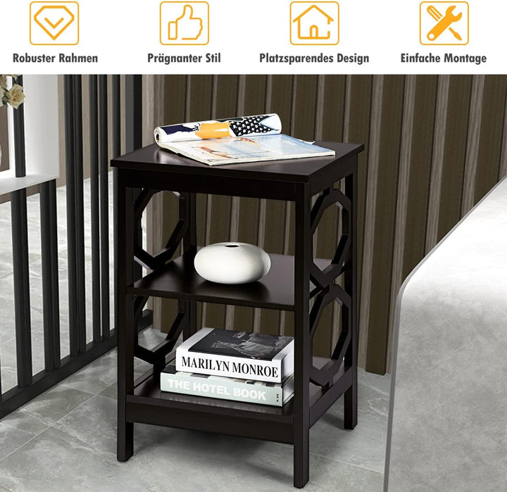 COSTWAY Nachttisch 3 Ebenen, Beistelltisch Nachtschrank, Sofatisch Couchtisch für Schlafzimmer, Wohn