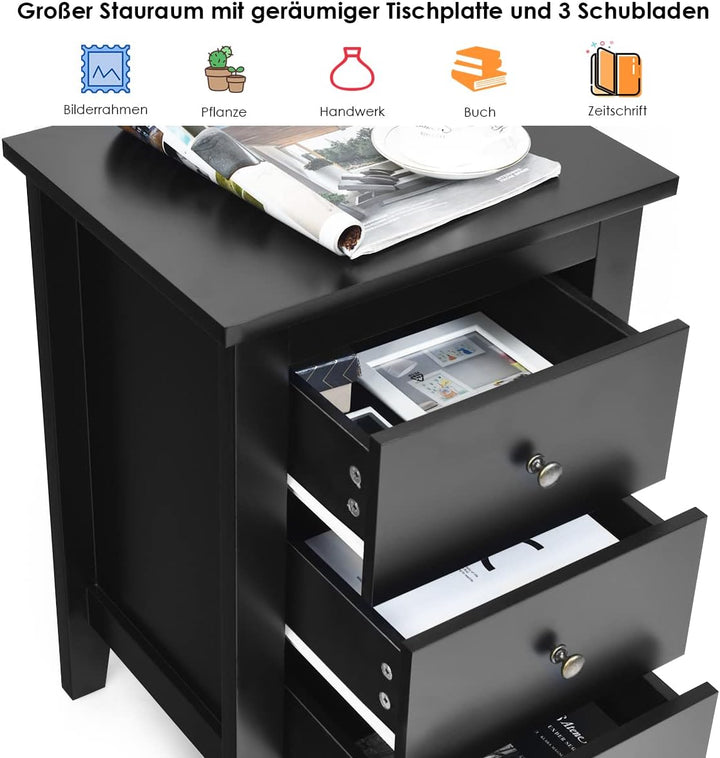 - 【Grosser Stauraum】Ausgestattet mit 3 Schubladen ermöglicht Ihnen unser Nachttisch, Bücher, Zeitschriften und andere Gegenstände zu ordnen. Durch die Gleitschiene und den Griff können Sie die Schubladen leicht herausziehen.