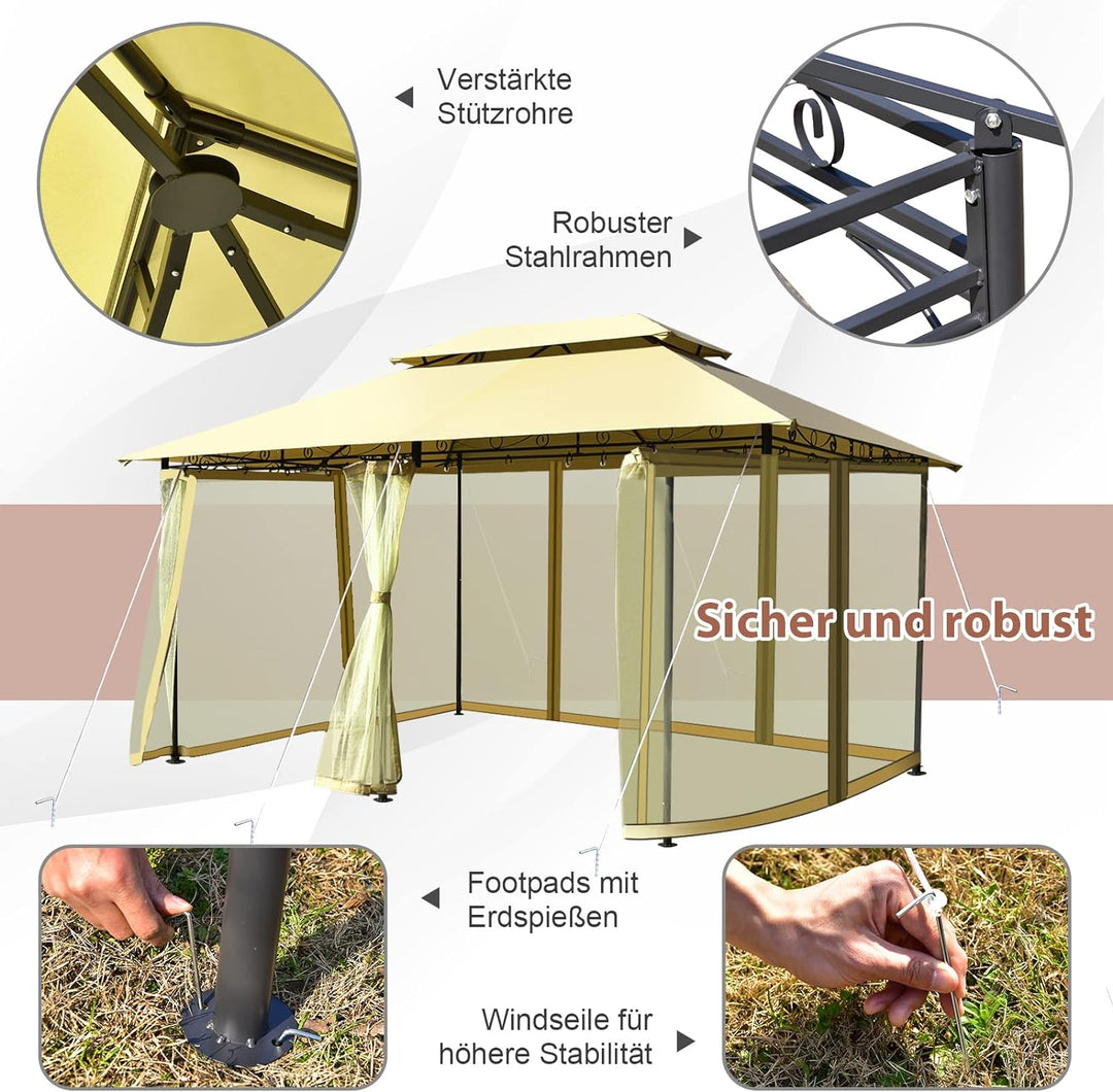 - 【Sichere & robuste Struktur】Der Gartenpavillon wird von einem robusten und rostbeständigen Stahlrahmen. Ein stabiler Stand ist daher garantiert. Windseile und Heringe tragen zudem zur Standfestigkeit bei.